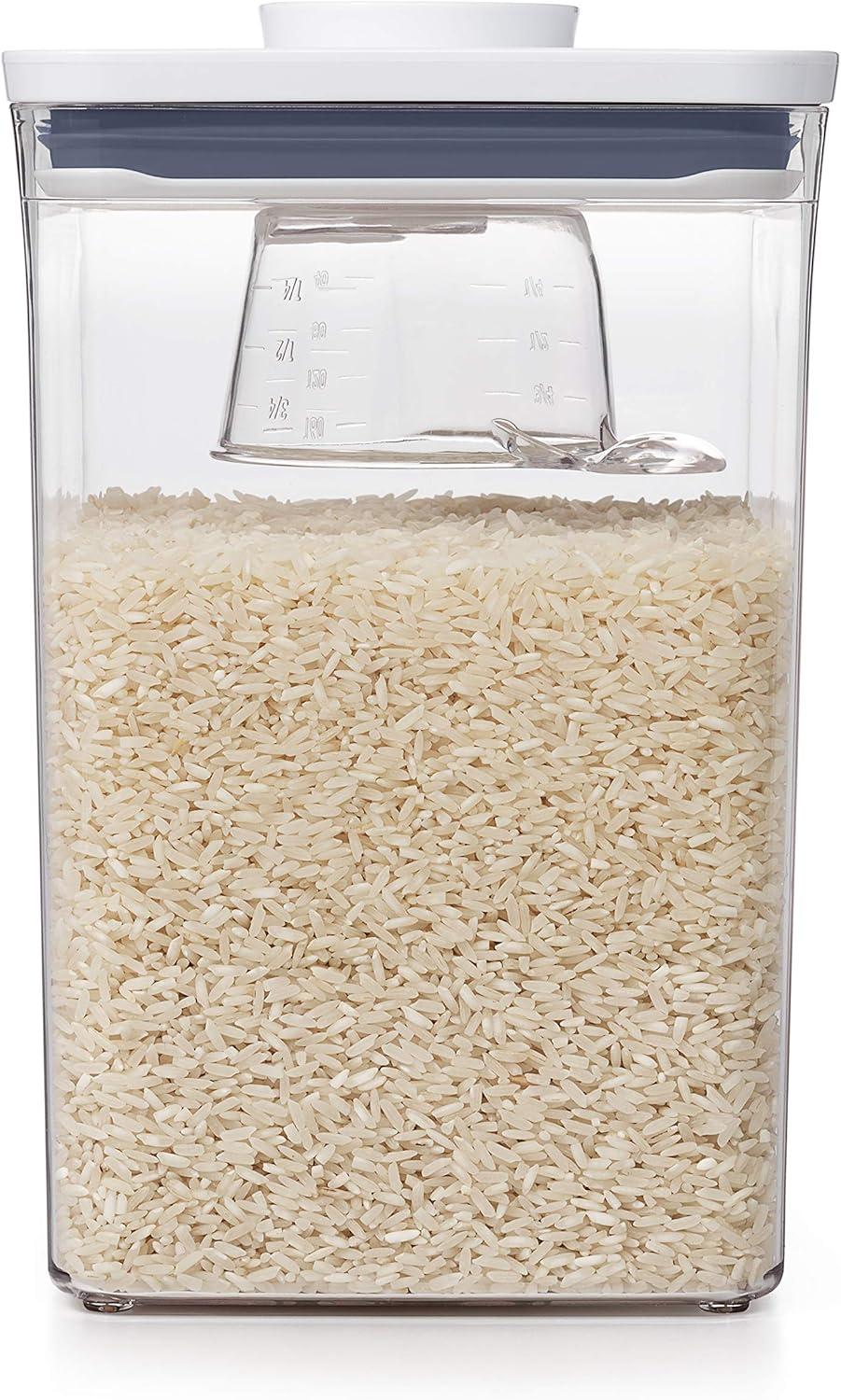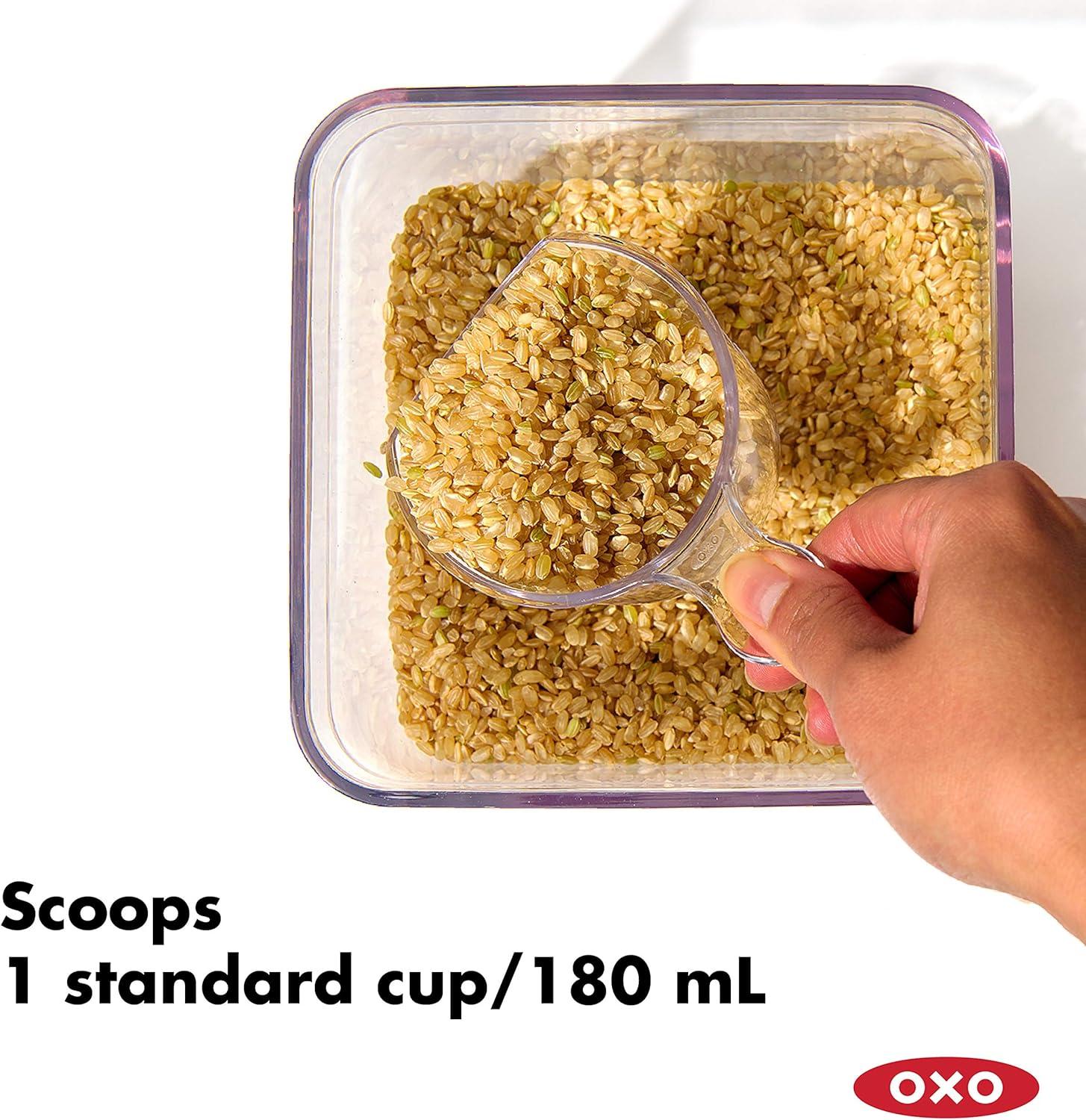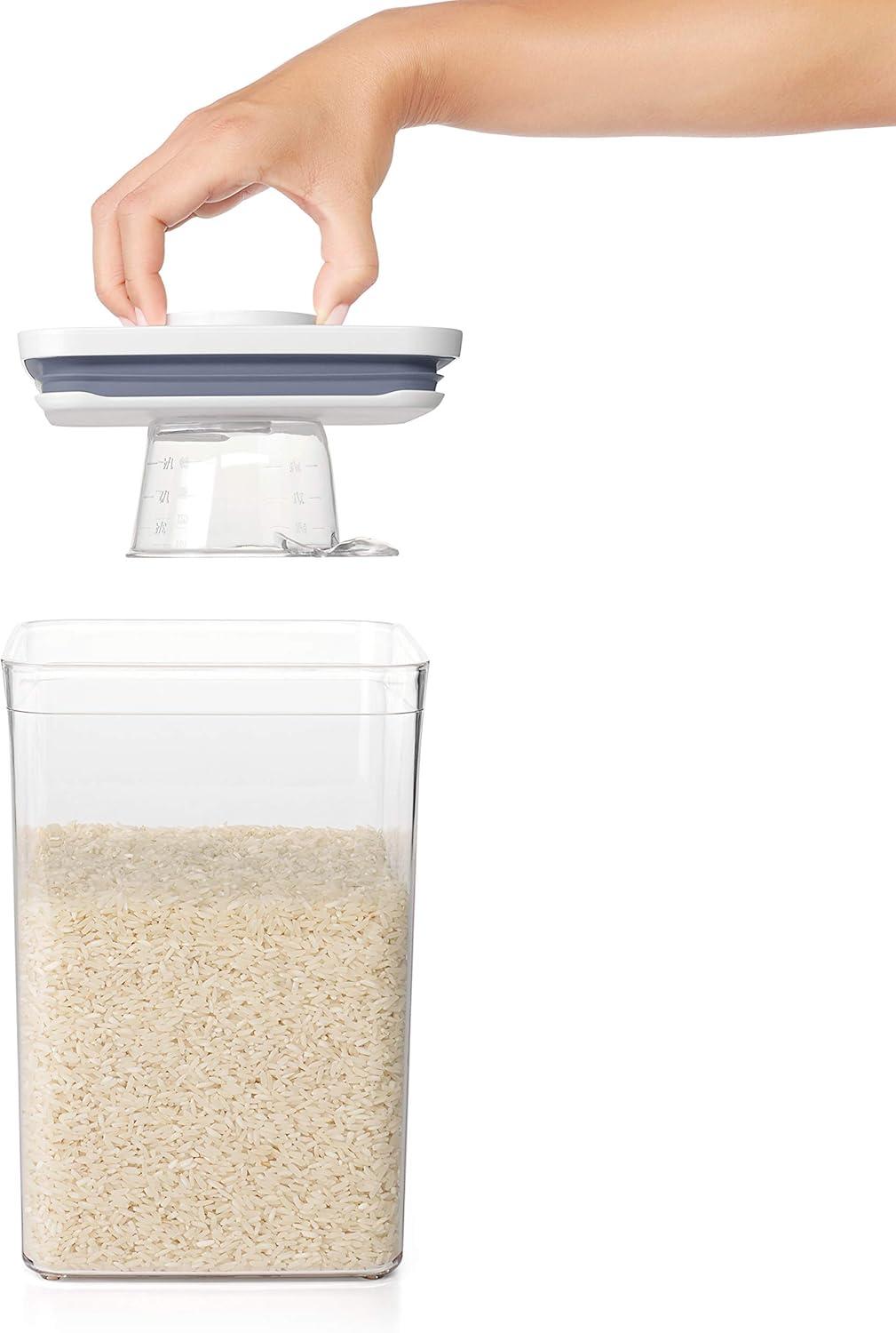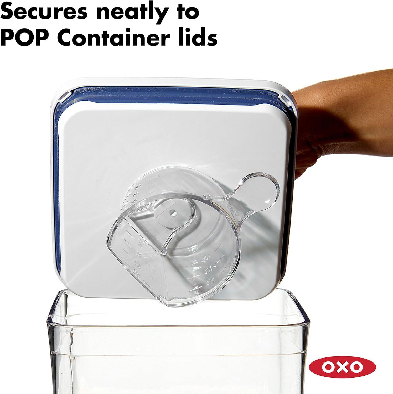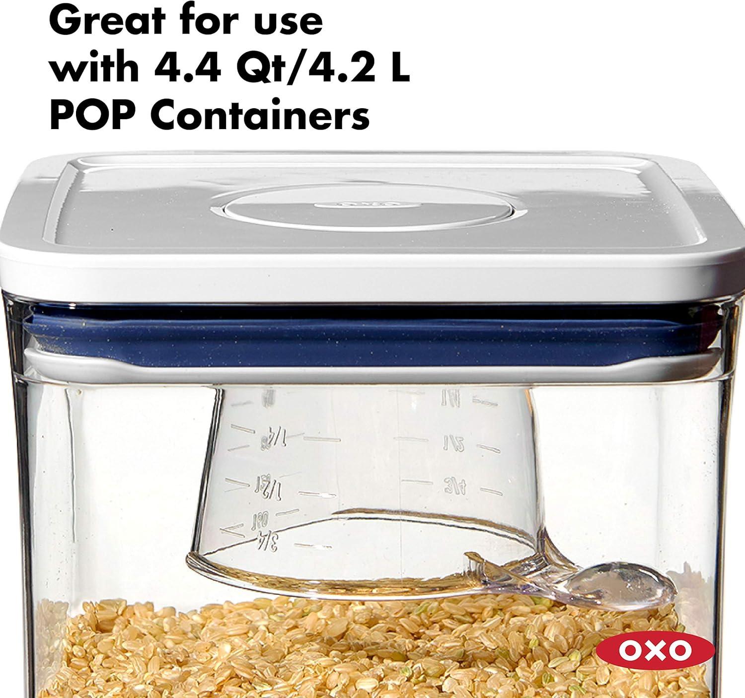 OXO Good Grips POP Accessories is a brand-new line of tools designed to help you make the most of POP. The OXO POP Rice Measuring Cup is perfect for portioning one standard cup of rice (180 mL) for use in pressure, slow or rice cookers. Like all POP Accessories, it secures neatly to the underside of new POP Container lids. Recommended for use with the 4.4 Qt / 4.2 L POP Container, sized for 5 lbs. of rice; also fits POP Containers with lid type: A and B. Dishwasher safe and BPA free.