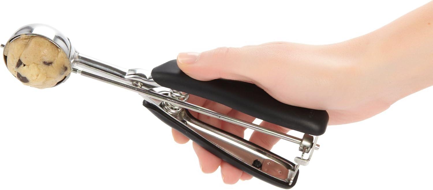 Yields perfectly shaped, 2 ¾”-diameter cookies. This size 40 portioner is designed for easy scooping and consistent shaping. The soft grip absorbs pressure while you squeeze to smoothly release your cookie dough. Dishwasher safe. Also try our Small and Large Cookie Scoops.