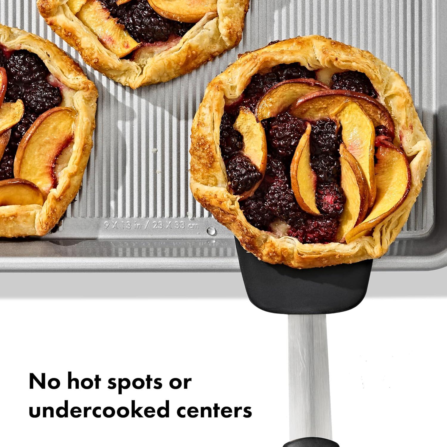 Commercial Grade Steel: Supports high heat conduction for even baking, browning and no hot spots or undercooked centers