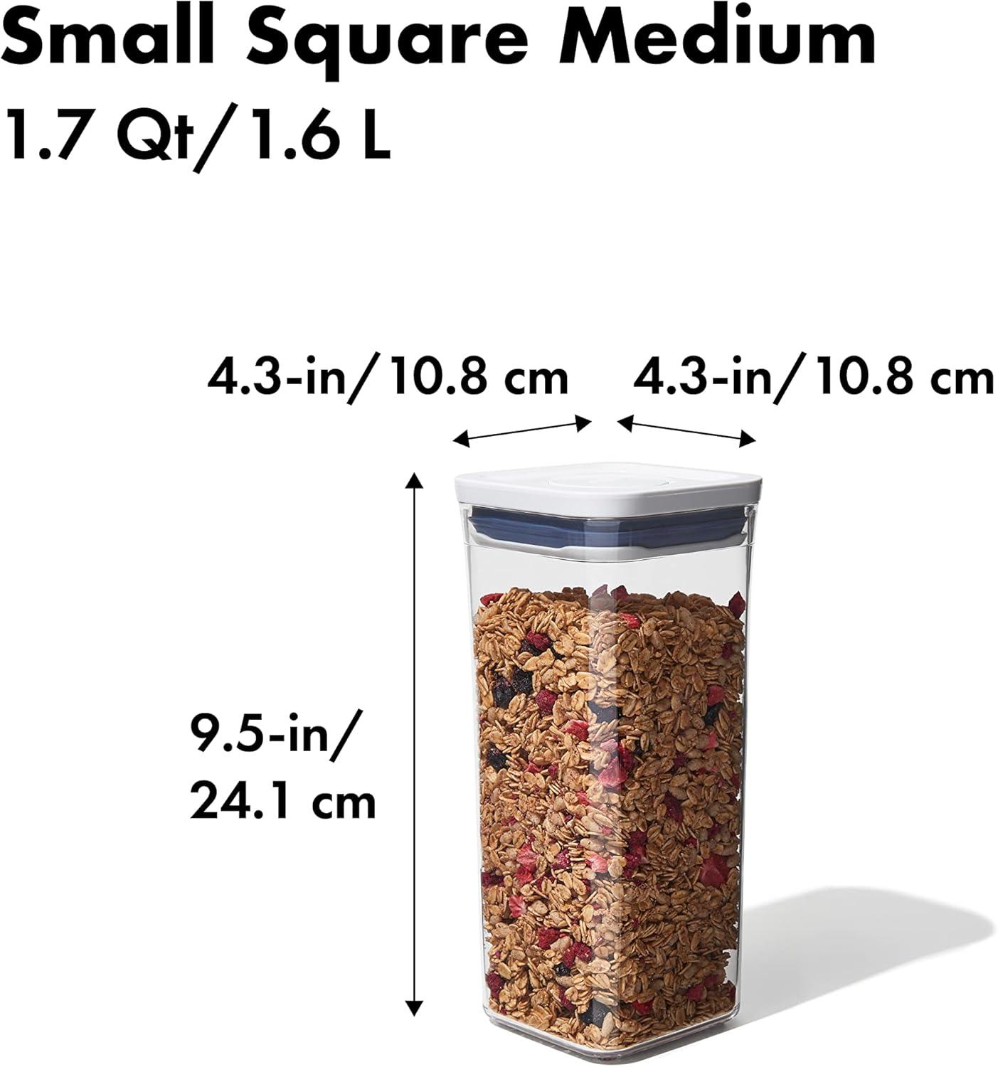 OXO Good Grips POP Container – Airtight Food Storage – Small Square Medium 1.7 Qt Ideal for granola, dried beans and snacks(1.7 Qt – Dried Beans)